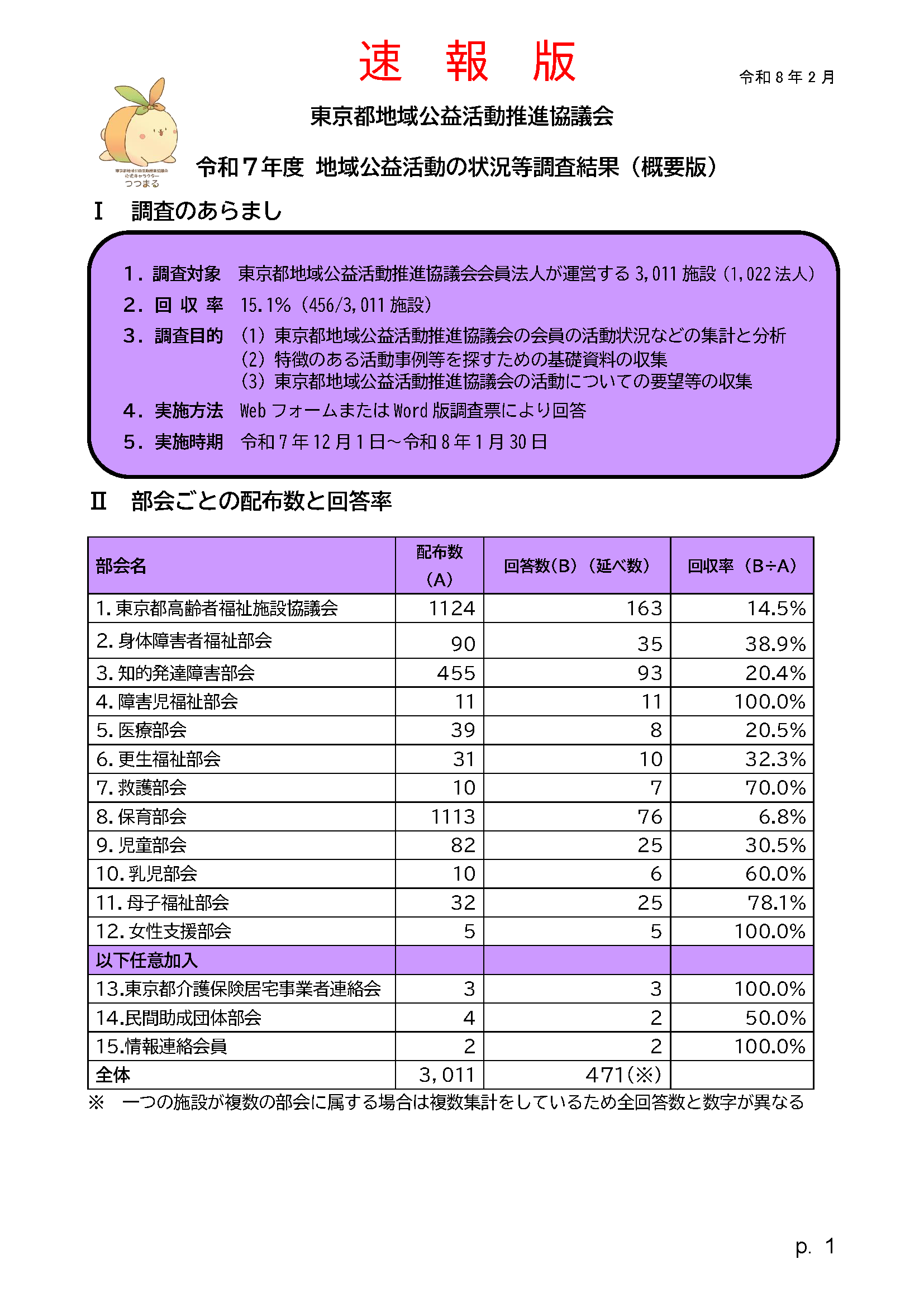 東京都地域公益活動推進協議会 令和7年度 地域公益活動の状況等調査結果(概要版) を公開しました