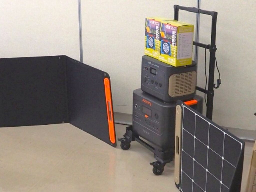 大規模な災害時に福祉避難所として、地域の介護が必要な高齢者に一部施設を開放して避難して頂くことを考えています。停電時などで携帯電話やタブレットに充電ができ情報収集ができ、また在宅酸素や充電式投光器の利用もできるよう、ポータブル電源を複数台購入し、防災訓練で実際に使用いたしました。