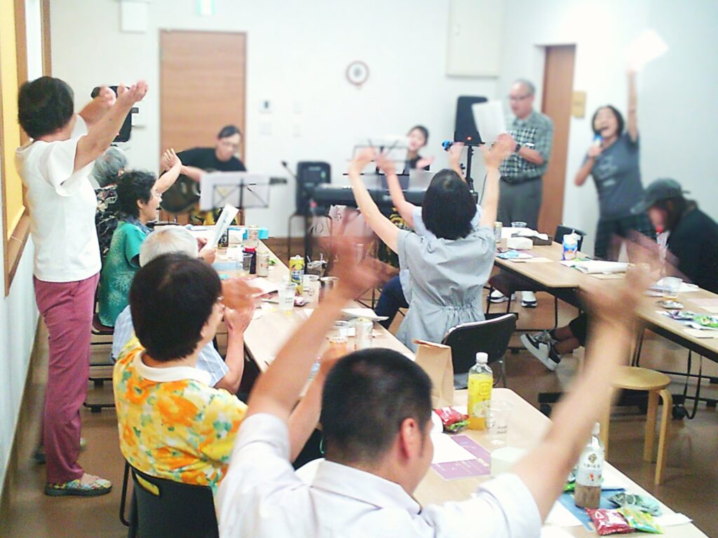 ・毎月1回の開催される「しゃべり場」は、精神に障害を抱えながら生活している人たちのための開放場です。普段はお茶を飲みながら話したいことを話す、そんな会です。派生イベントとして「歌い場」を開催し、音楽と飲食を楽しみました。