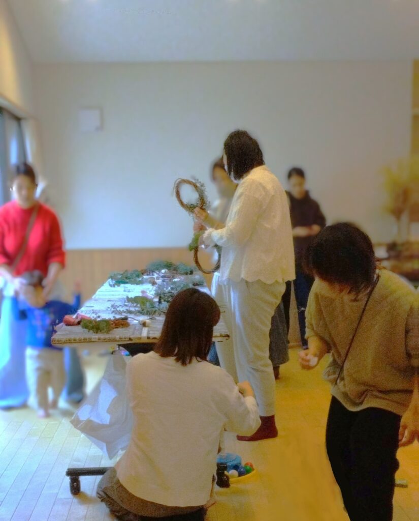 また年数回のイベントも行っており、今年度も毎年好評いただいている自然の植物を使ってのクリスマスリース作りを12月に開催し、3月には子どもたちも手作り楽器で一緒に楽しめる参加型フルートコンサートも開催予定です。お子さんの記念日や行事の記念の写真が残せるように、撮影スペースも不定期ですが設置して、お子さんを自由に撮影していただいたり、親御さんとの写真も撮らせていただいたりして喜んでいただいています。