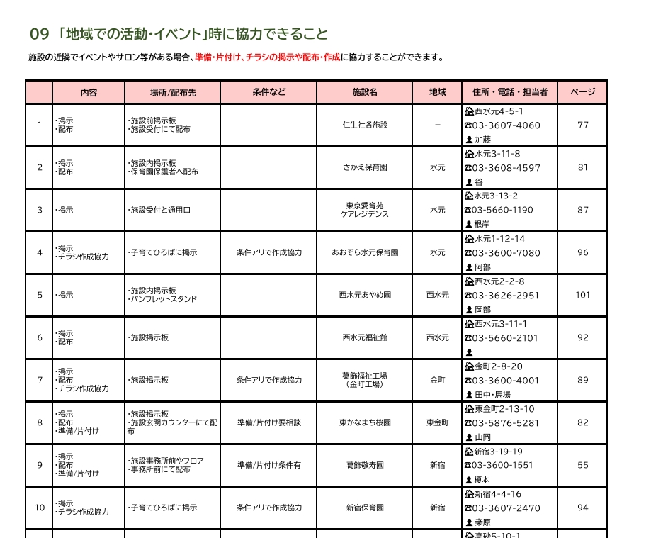 今回の最新版では新たに「地域での活動やイベント」時に協力できることを記載しています!